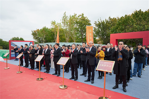 在热烈的掌声中,张毅恭、蔡战胜、陈祖昌及夫人蒋丽莉共同为奠基石揭彩。随后,市领导、省侨联领导、侨领代表等一同执铲培土,标志着泉州华侨历史博物馆新馆建设正式启动。